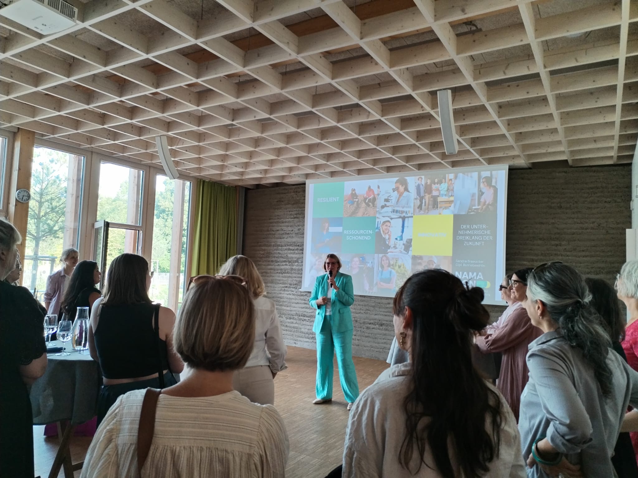 Zur Ladies Lounge kamen über 100 Frauen aus Wirtschaft, Politik und Gesellschaft im Umweltbildungszentrum zusammen. Oberbürgermeisterin Eva Weber eröffnete die Veranstaltung, die seit 2016 als bedeutende Plattform für Unternehmerinnen und engagierte Frauen Impulse setzt. In ihrer Keynote beleuchtete Sandra Braeucker die Chancen des European Green Deal für eine resiliente und ressourcenschonende Wirtschaft. Elisabeth Englram vom Landschaftspflegeverband Stadt Augsburg e.V., der das UBZ betreibt, stellte das Konzept „Bildung für nachhaltige Entwicklung“ vor. Der Abend bot nicht nur inspirierende Denkanstöße, sondern auch Raum für intensives Netzwerken in besonderer Atmosphäre, abgerundet durch regionale kulinarische Highlights.